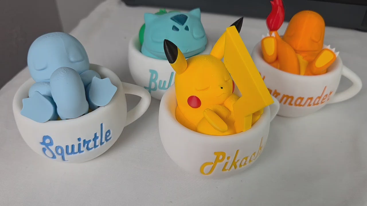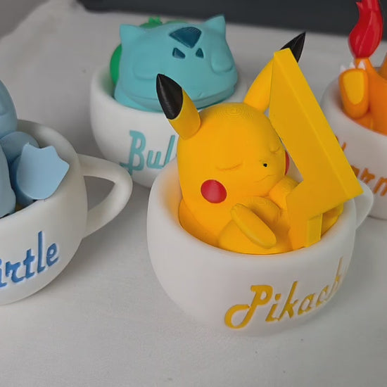 ¡Completa tu colección con este set exclusivo de Pikachu, Charmander, Squirtle y Bulbasaur en sus tazas personalizadas!